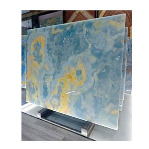 Xiamen Carmel Stone Co., Ltd. is a professional supplier of marble & granite products , and does well at Countertops & Vanity Top, Tiles & Slabs, Tombstone & Monuments etc. Golden Blue Onyx is a stunning and rare natural stone quarried in Iran, a country known for its rich deposits of unique and high-quality onyx. This particular onyx variety is characterized by its mesmerizing combination of golden and blue hues, creating a captivating and luxurious appearance. Here's a detailed description of Golden Blue Onyx: Appearance: Golden Blue Onyx features a beautiful blend of golden and blue colors, each gracefully flowing into one another. The golden tones create a warm and inviting ambiance, while the blue hues add a touch of elegance and tranquility. The stone's striking color combination makes it a sought-after choice for creating luxurious and sophisticated interiors. Translucency: Like other onyx varieties, Golden Blue Onyx possesses a translucency that allows light to pass through the stone. When backlit or exposed to light sources, the onyx glows, illuminating the space with a soft and ethereal radiance. This unique property enhances the stone's allure and adds an enchanting and magical element to any application. Veining: Golden Blue Onyx exhibits intricate and delicate veining patterns, which may appear in various shades of gold and blue. These veins create beautiful natural designs, resembling the patterns found in flowing water or abstract art. The veins add depth and character to the stone's appearance, making each piece unique and one-of-a-kind. Texture: Golden Blue Onyx has a smooth and polished surface, which enhances its natural luster and makes it a favored material for decorative applications. The sleek texture adds to the stone's luxurious and sophisticated appeal, elevating the aesthetics of any space it adorns. Applications: Due to its captivating beauty and translucent properties, Golden Blue Onyx is often used for decorative purposes and accent pieces. It is commonly employed for backlit feature walls, countertops, vanity tops, tabletops, and decorative art pieces. The onyx's enchanting appearance makes it a popular choice for creating luxurious and visually stunning interiors. Origin: Golden Blue Onyx is quarried in Iran, a country known for its abundant and diverse natural stone resources. Iran's unique geological conditions contribute to the formation of this remarkable onyx variety. Versatility: While Golden Blue Onyx is more commonly used for decorative purposes and accent pieces, it can still be employed in various design styles. Its beautiful color combination and translucent properties make it a versatile stone that complements both contemporary and classic interiors. Durability: Onyx is a relatively softer stone compared to granite or marble, making it more susceptible to scratching and etching. As such, Golden Blue Onyx is best suited for interior applications where it can be protected from heavy wear and tear. When considering Golden Blue Onyx for your project, it's essential to view samples or slabs in person to appreciate its unique beauty and select the specific pieces that best match your design vision. As with all natural stones, variations in color and veining can occur, so careful selection ensures the stone meets your expectations for your specific design project.