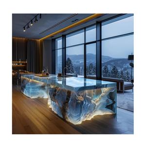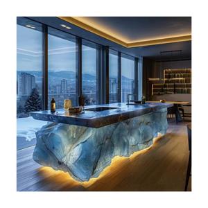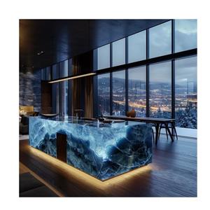 Backlit Modern Pink Crystal Blue Green Onyx Kitchen Island Bar Countertop with LED Light