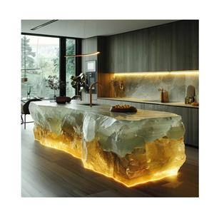 High-End Artificial Stone Resin Kitchen Countertops Translucent Blue Onyx Island Backlit Green Vanity Tops White Table
