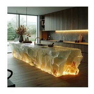 Modern Solid Surface Kitchen Light Countertop Vanity Tops Table Tops Bathroom White Onyx Island Luxury Backlit Translucent Onyx Kitchen Countertop Marble Island for Home Decoration Kitchen Island Backlit Natural Onyx Kitchen Countertop for Villa Kitchen and Hotel Lobbies Luxury Stone Natural Backlit Onyx Marble Island Countertop Bar Top Translucent DesignEmail Details -